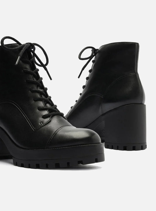 Economize 53%Bota Coturno Preta Couro Salto Bloco Tratorado