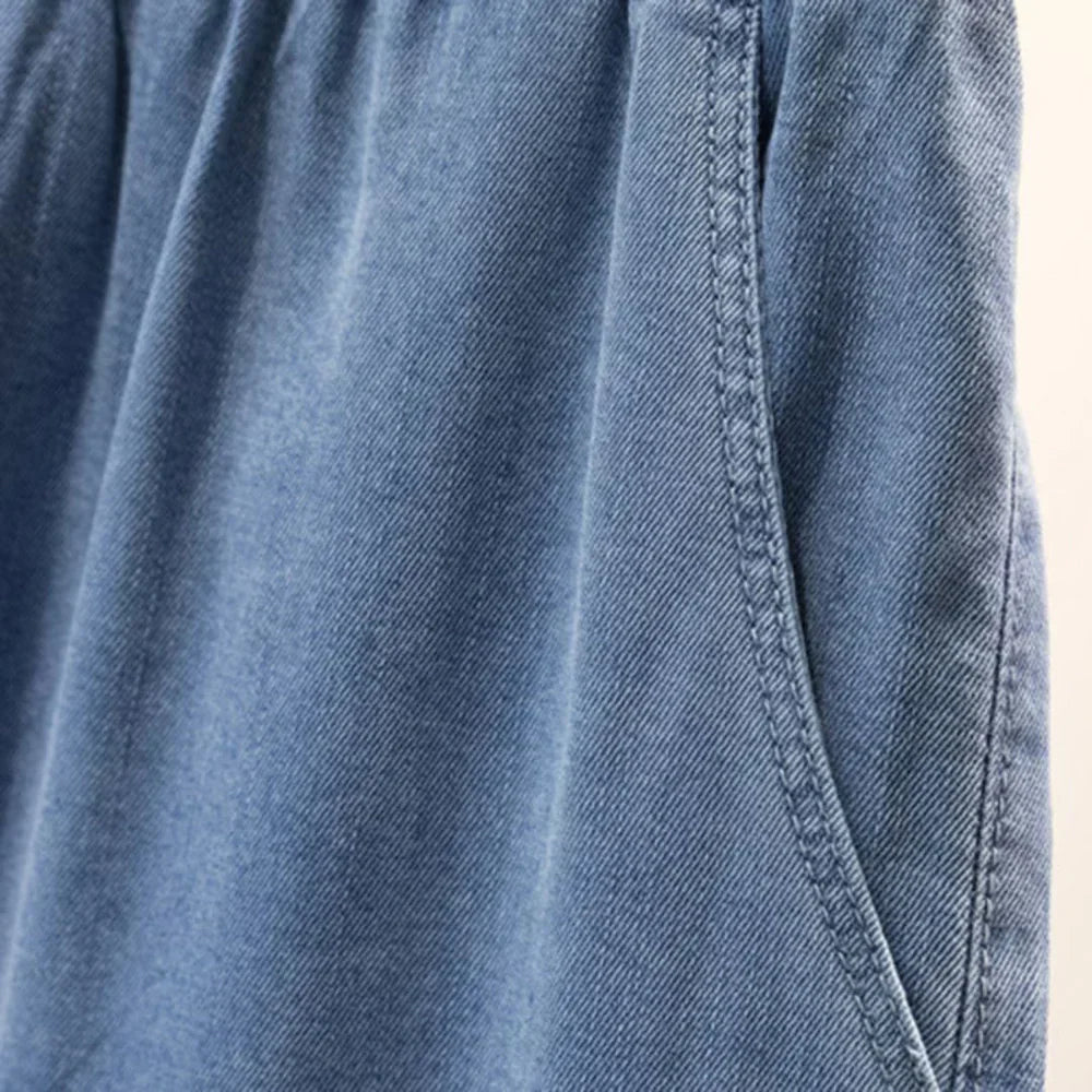 ✔️ Versatilidade e Conforto: A Calça Jeans Stefan é perfeita em todas as ocasiões e momentos... O tecido jeans em seda gelo é o mais leve de todos, aliado ao design largo nas pernas e elástico na cintura ela permite que você esteja confortável e bem vestida até mesmo nas situações mais adversas.