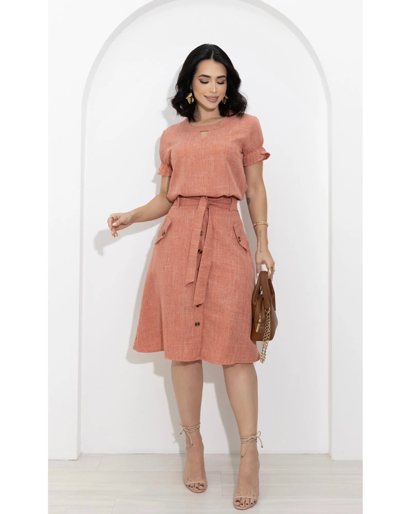 💖 Garanta agora o seu Conjunto Saia e Blusa Linho Decote Gota e sinta-se linda, leve e sofisticada em qualquer ocasião!