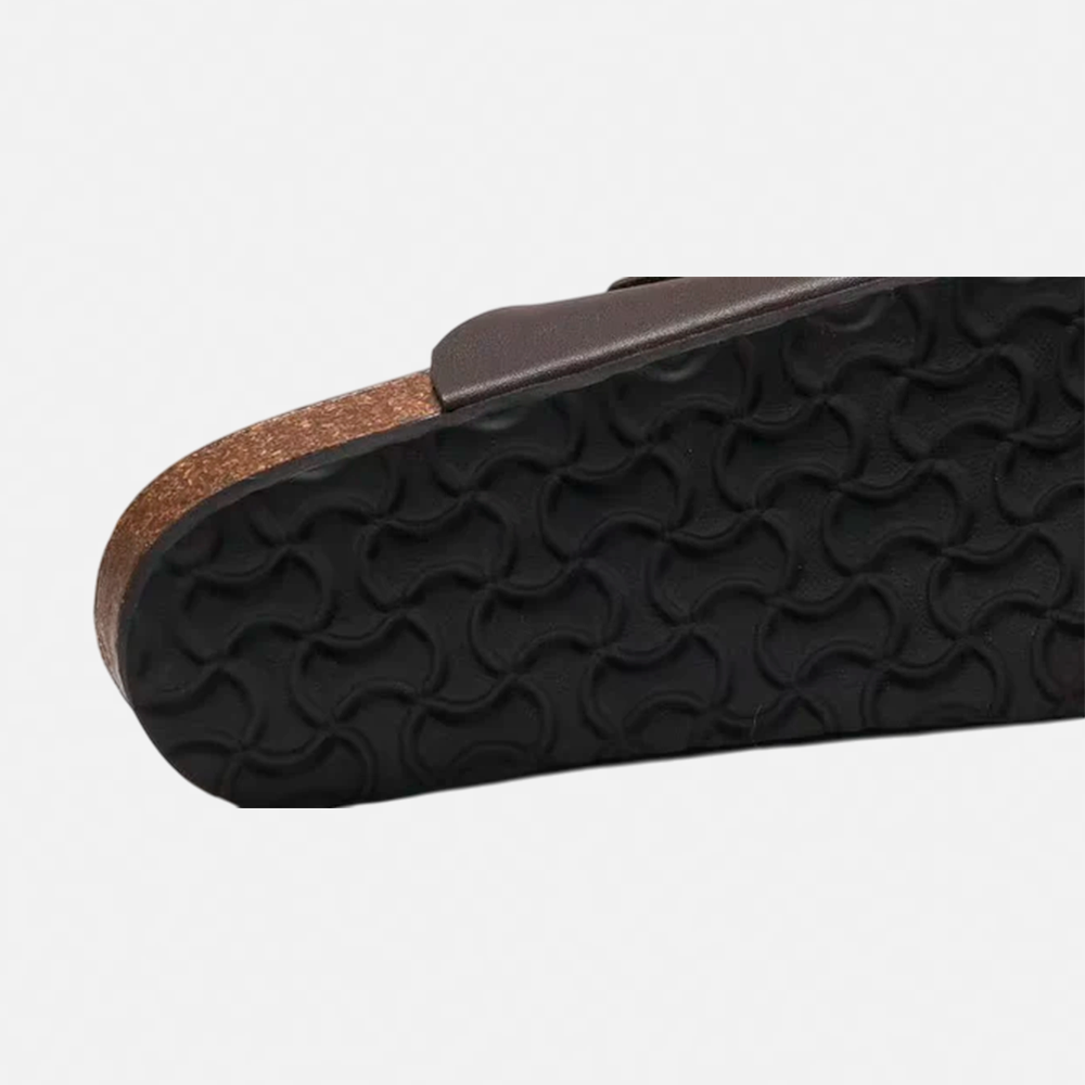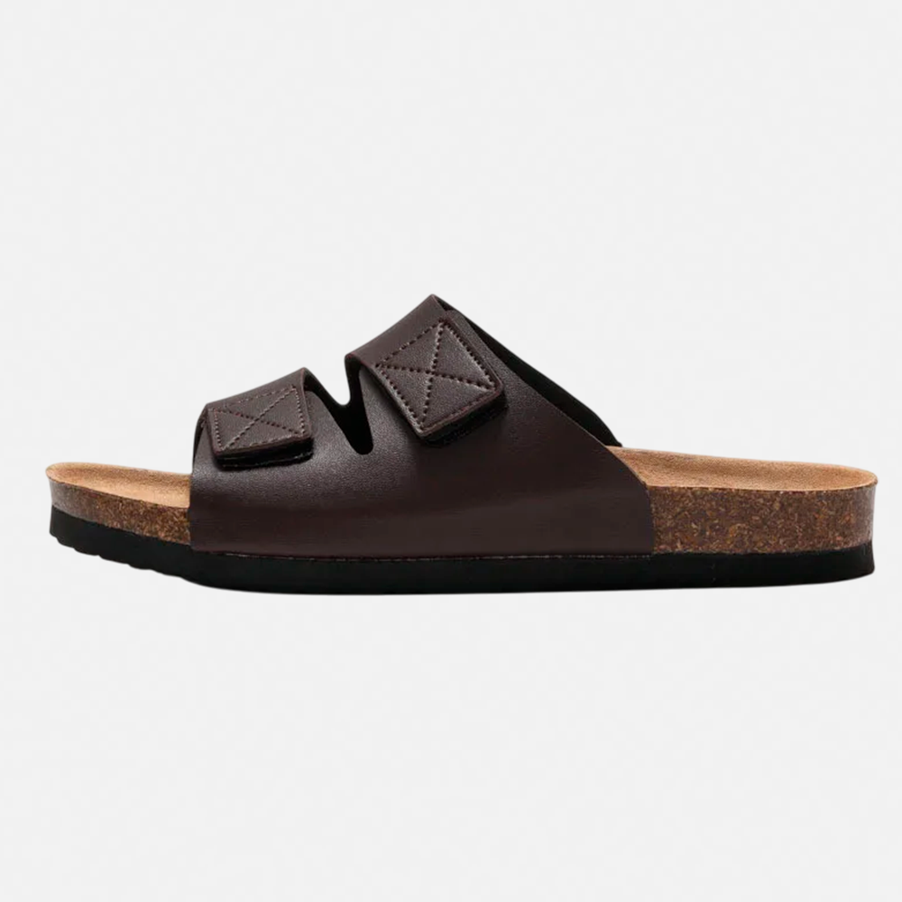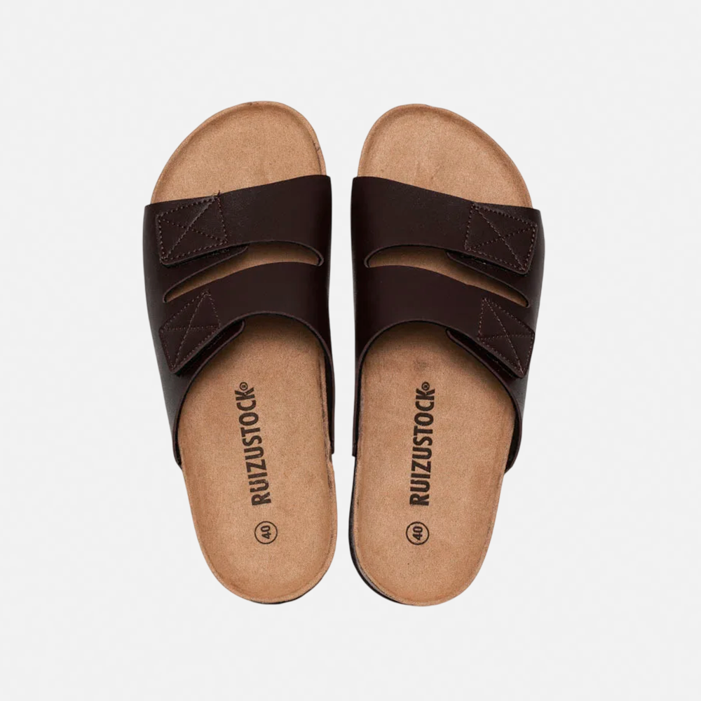 Estilo: casual sofisticado, com inspiração urbana e toque minimalista Solado: borracha leve e antiderrapante, ideal para diversos tipos de piso Respirabilidade: alta, com design aberto que permite circulação de ar constante Palmilha: anatômica, com base em cortiça natural que se molda aos pés ao longo do uso Cabedal: couro sintético de alta durabilidade, com acabamento fosco e costuras reforçadas Fechamento: duas tiras ajustáveis com velcro embutido, que proporciona firmeza e personalização no encaixe Revestimento interno da palmilha: camada macia que proporciona conforto térmico e absorção de impacto Indicação de uso: ideal para dias quentes, ambientes descontraídos, composições com bermuda de alfaiataria ou calças leves Cores disponíveis: preta, branca e marrom