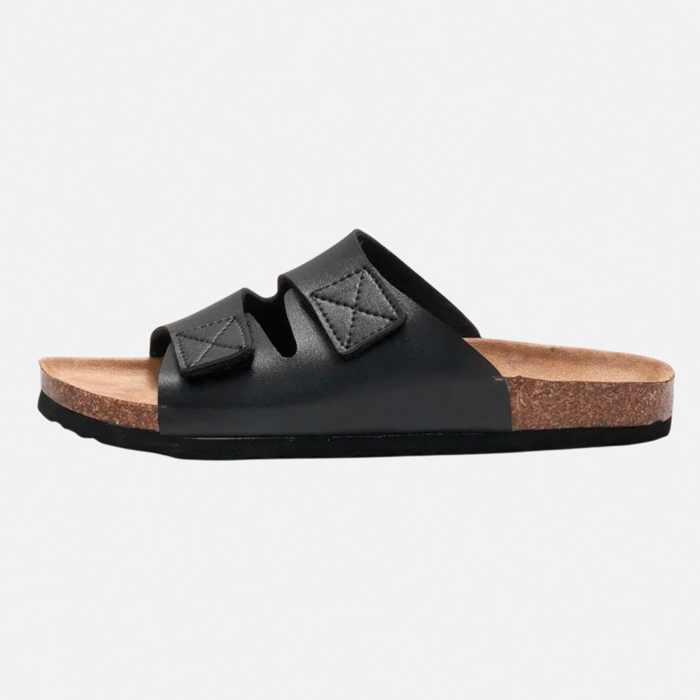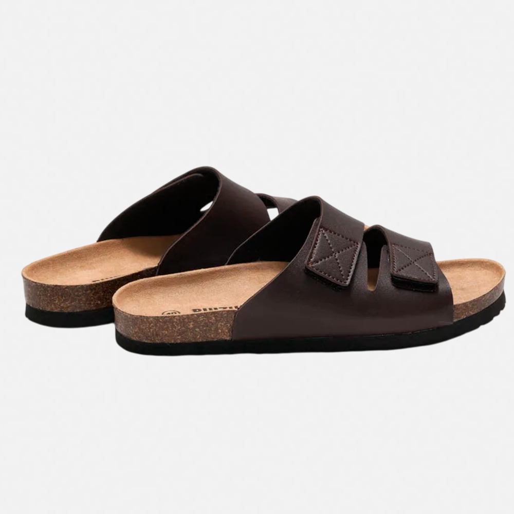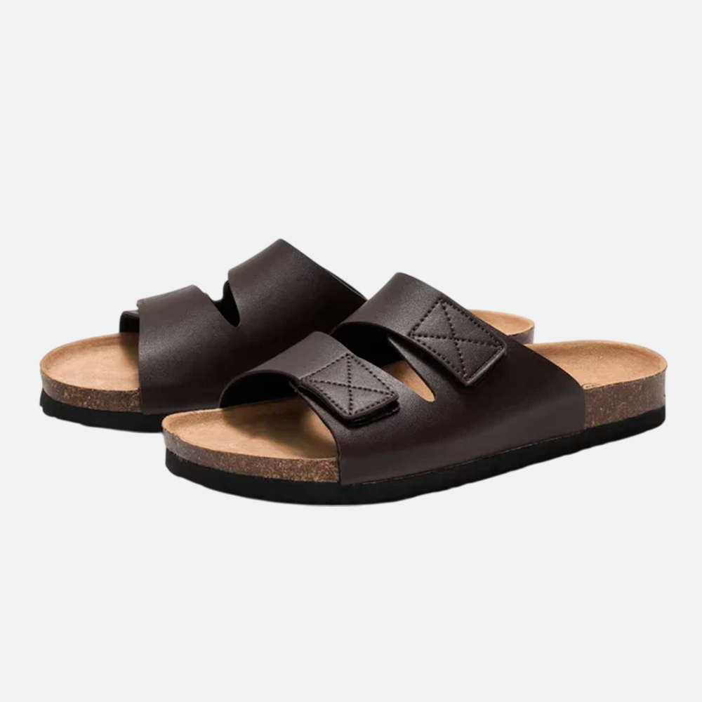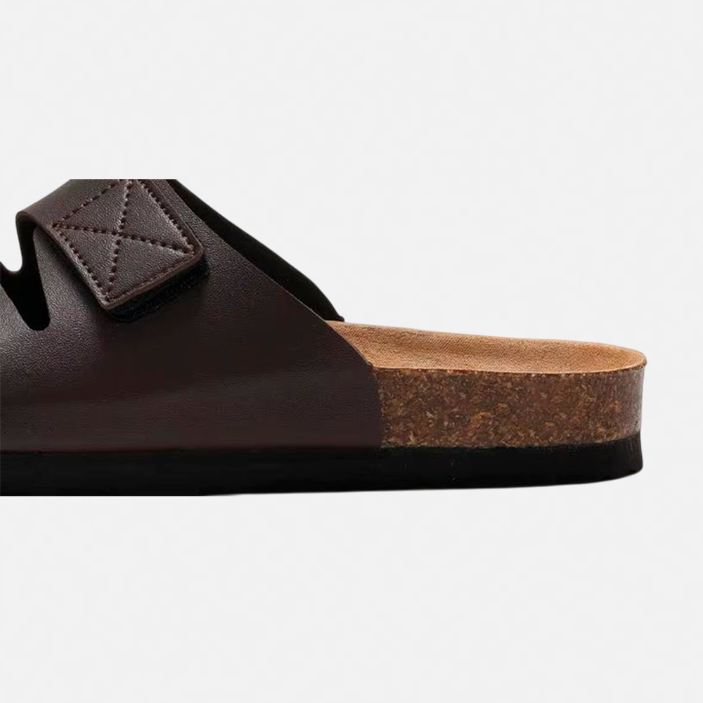Estilo: casual sofisticado, com inspiração urbana e toque minimalista Solado: borracha leve e antiderrapante, ideal para diversos tipos de piso Respirabilidade: alta, com design aberto que permite circulação de ar constante Palmilha: anatômica, com base em cortiça natural que se molda aos pés ao longo do uso Cabedal: couro sintético de alta durabilidade, com acabamento fosco e costuras reforçadas Fechamento: duas tiras ajustáveis com velcro embutido, que proporciona firmeza e personalização no encaixe Revestimento interno da palmilha: camada macia que proporciona conforto térmico e absorção de impacto Indicação de uso: ideal para dias quentes, ambientes descontraídos, composições com bermuda de alfaiataria ou calças leves Cores disponíveis: preta, branca e marrom